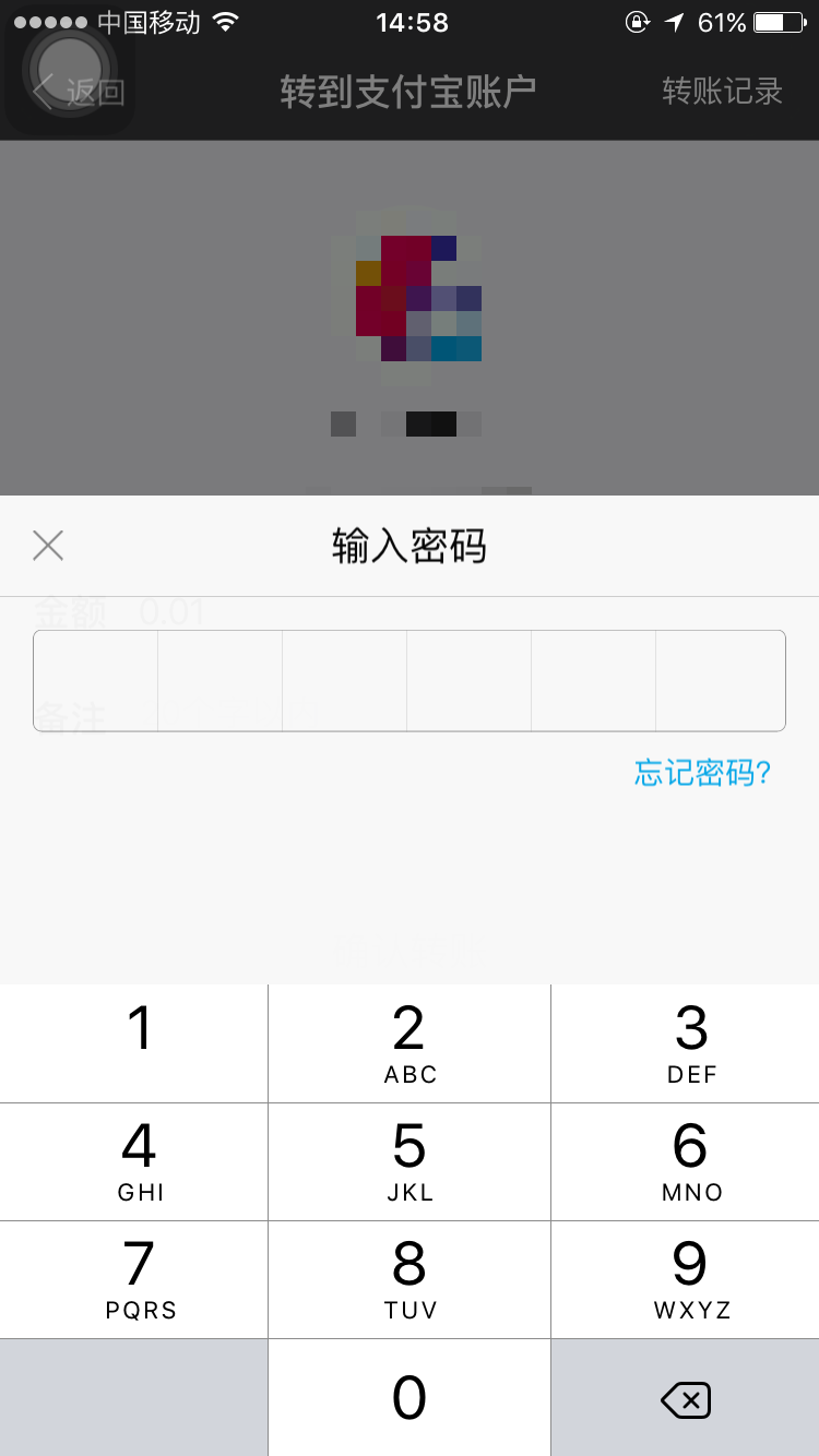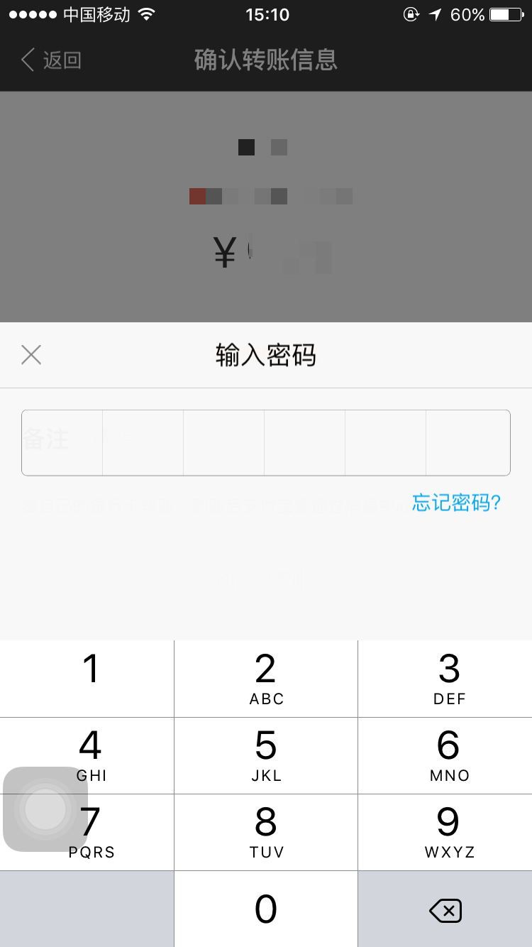 输入要转账金额,确认后点击“转账”。如果您有多张银行卡,可以点击蓝色小字,更换支付方式