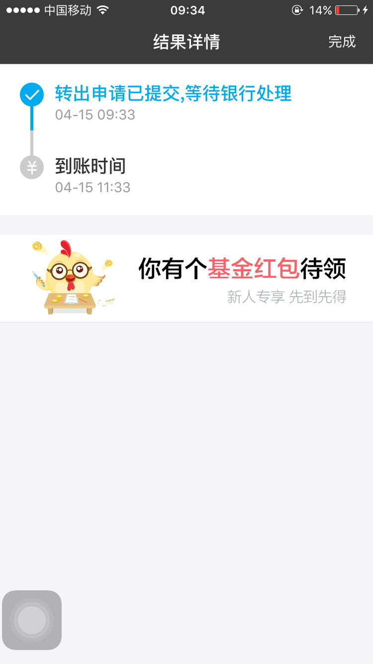 转出申请已提交,等待银行处理,预计2小时内到账