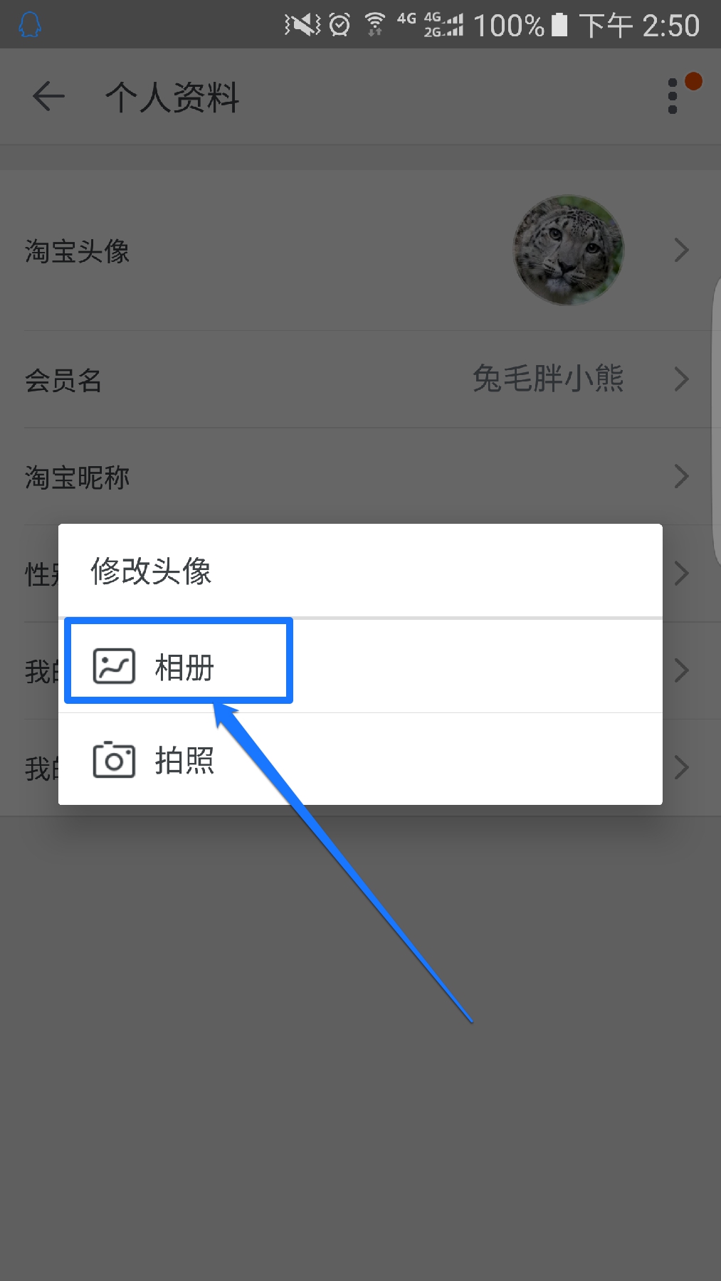 这里我们选择已有图片作为淘宝的头像。点击“相册”