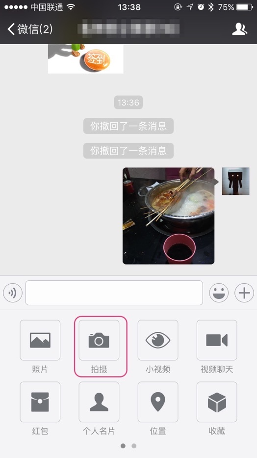 如果您希望将照片或视频发给您朋友,请点击聊天界面右下角的“加号”图标