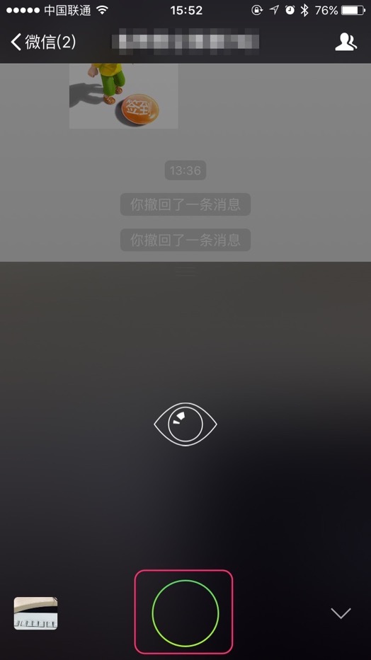 有时您可能会想撤销已经发送的信息,这是您只要按住要取消信息的绿色方框等待片刻就会显示一个黑色的菜单,点里面的“撤回”即可取消该记录。(点右侧的白色箭头可以查看更多菜单,包括“删除”)