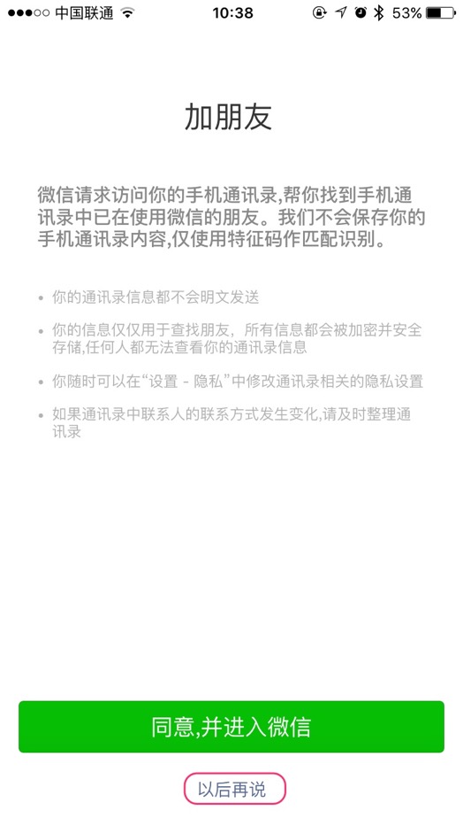 • 建议您不要允许微信通过通信录查找好友,因为您的通信录会上传到微信的服务器上。