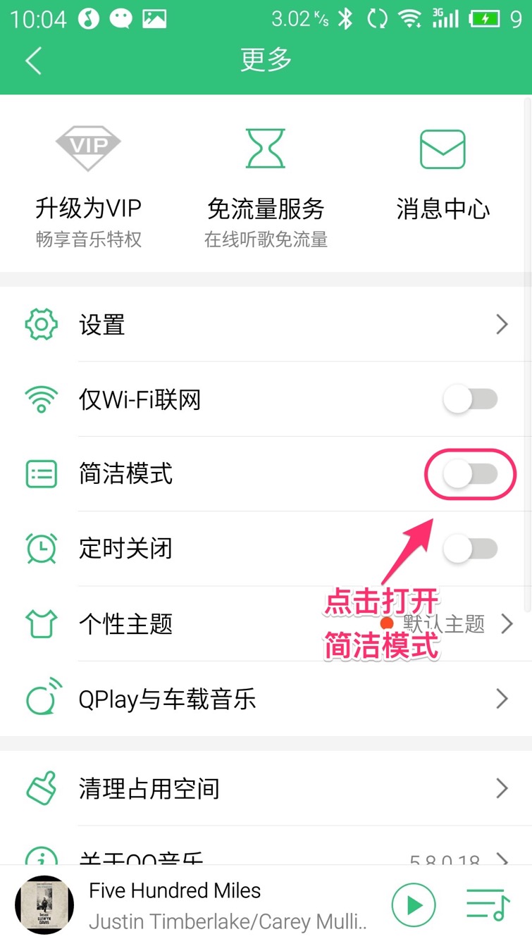 本步骤截图中的界面是QQ音乐的标准模式,现在介绍如何进入简洁模式。点击左上角的“三条横线”图标,进入QQ音乐更多界面