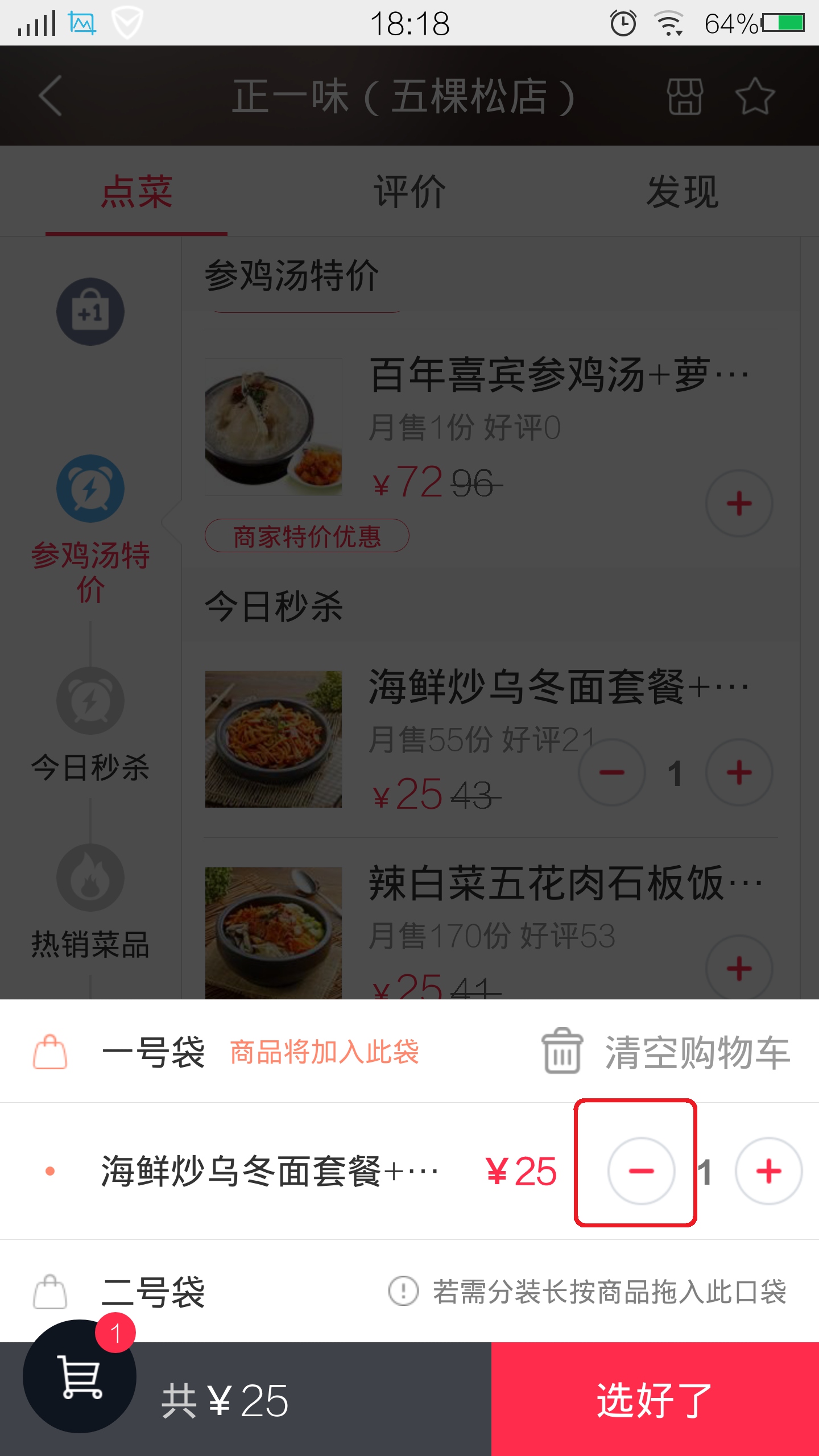 选择菜品-移除购物车