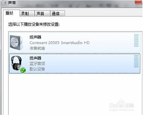 可以看到此时的默认播放设备是内置的扬声器,必须把蓝牙音频作为默认播放设备,才能使用蓝牙耳机听音乐 。